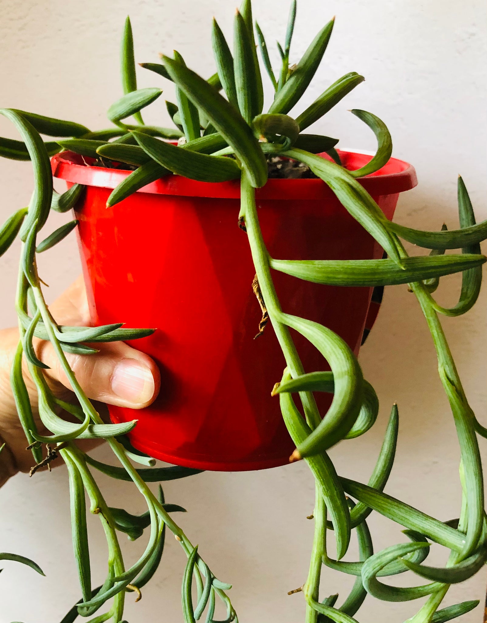 A variety of Senecio with chalk blue banana shaped leaves.
